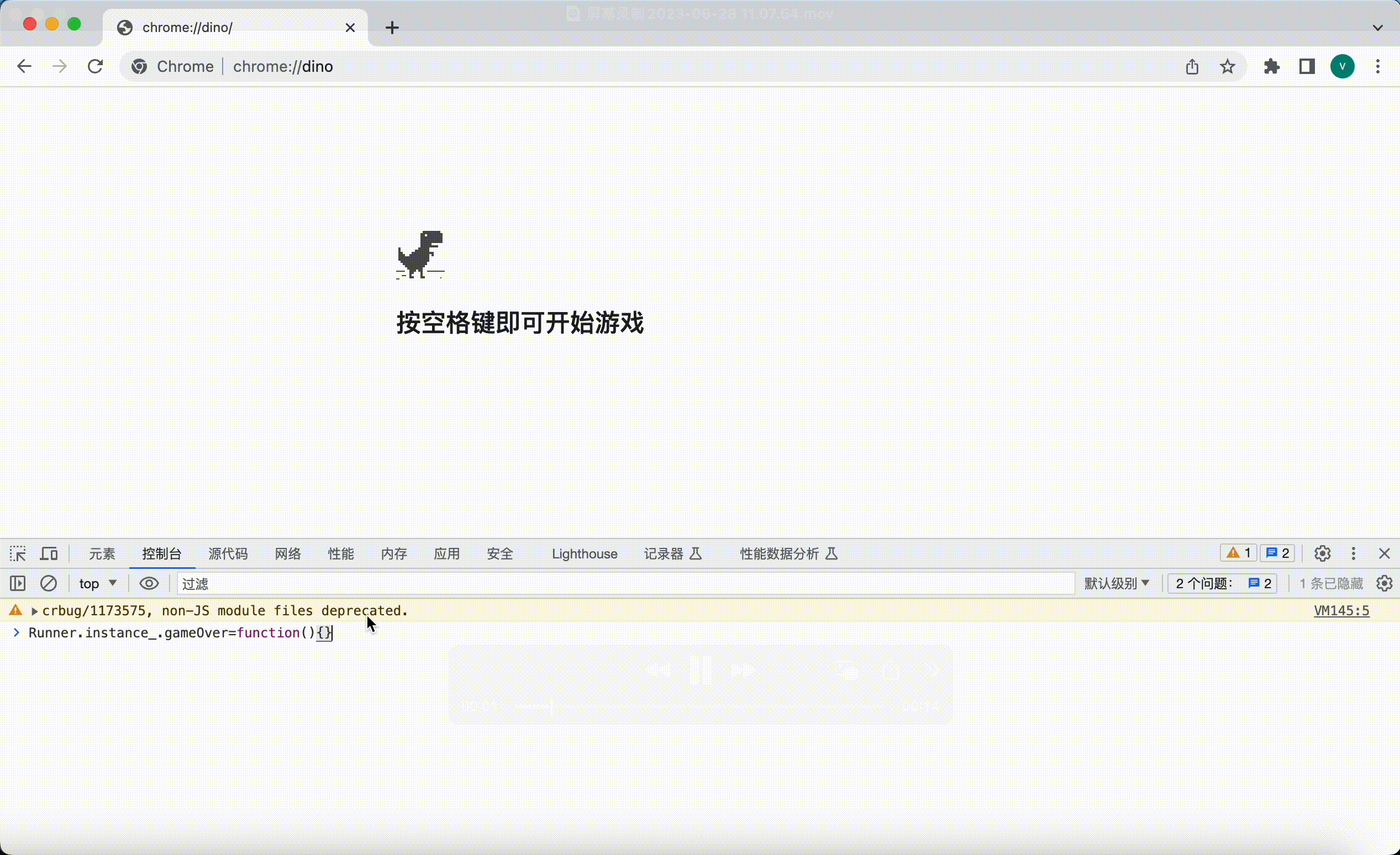 chrome://dino and press F12 -> Console to enter.)