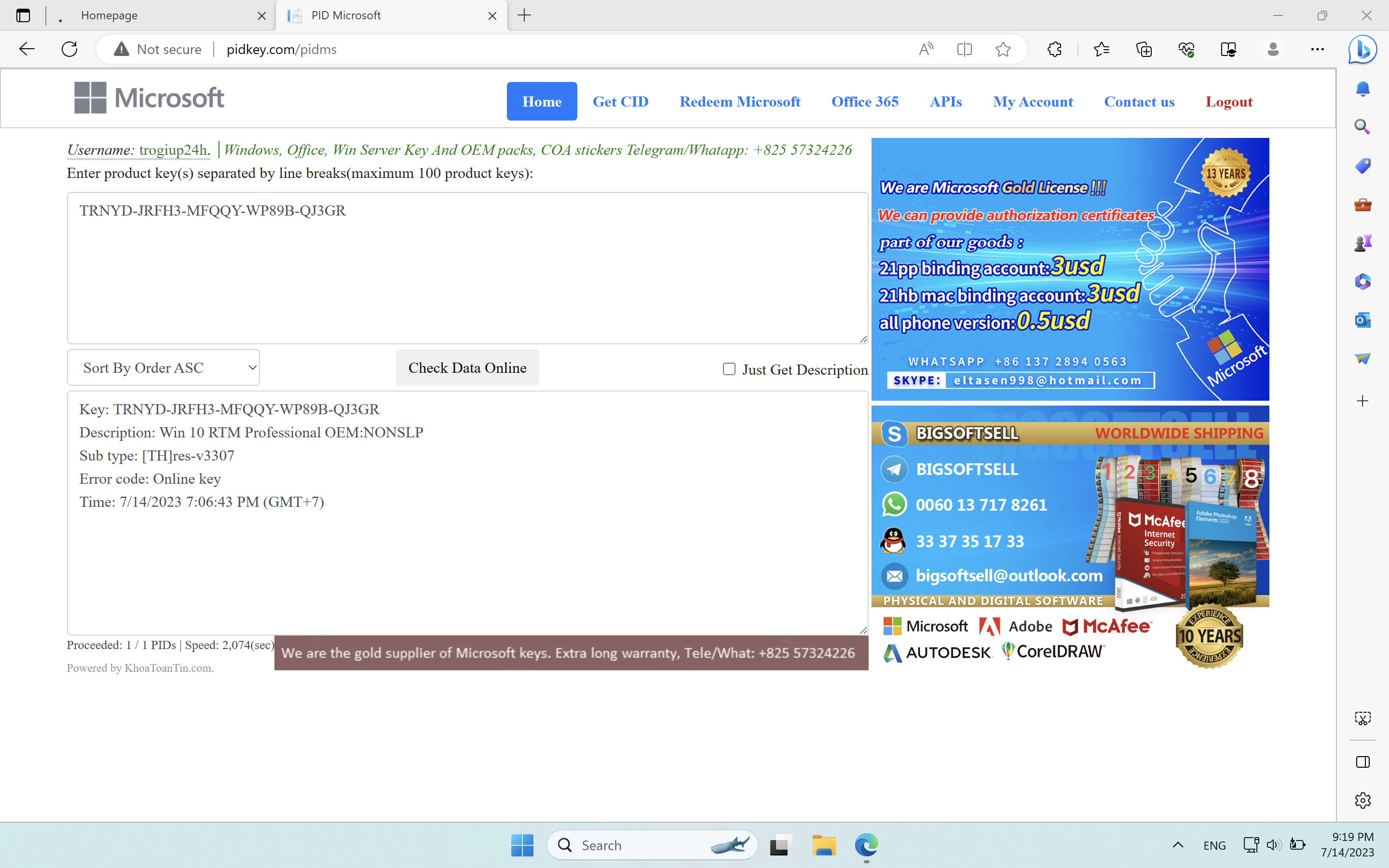 So where are you can check the key's error code? You can go to this website: http://pidkey.com/pidms to check keys if available.