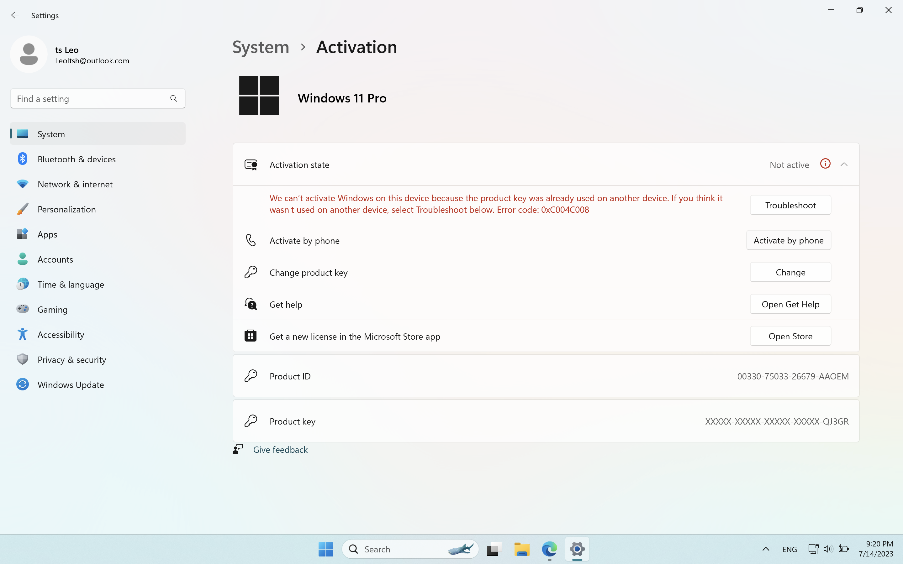 Error code: 0xC004C008