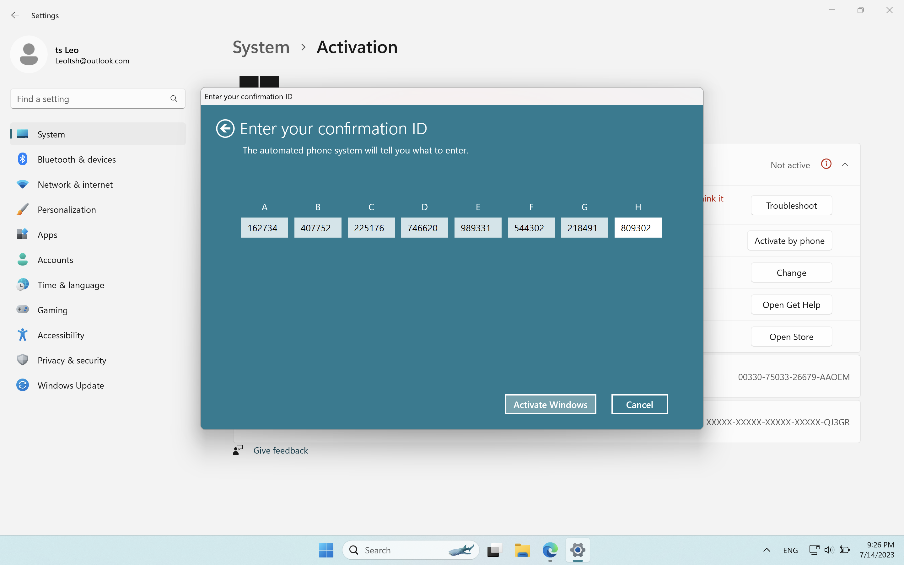 Then press Activate by phone to get IID.